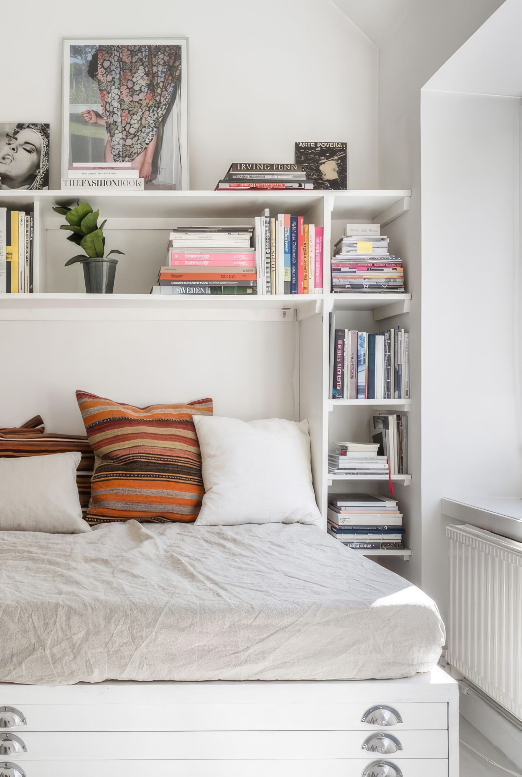 Dans une petite chambre, le lit est l’élément central, mais aussi le plus volumineux. Pour éviter qu’il ne monopolise tout l’espace, optez pour un lit avec rangements intégrés. Les tiroirs sous le sommier sont parfaits pour ranger le linge de lit, les vêtements hors saison ou les accessoires peu utilisés. Autre option pratique : le lit-coffre, dont tout le sommier se soulève pour dévoiler un grand espace de rangement caché. Cela permet d’éviter une commode ou une armoire supplémentaire.