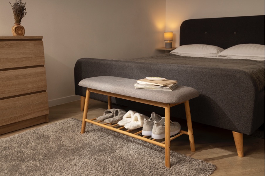 Le lit est le cœur de la chambre parentale. Ses dimensions doivent correspondre à la surface disponible afin de préserver un équilibre visuel et une circulation aisée. Un modèle avec rangement intégré peut optimiser l’espace sans ajouter de meubles supplémentaires. Le choix d’une tête de lit structurante permet également de délimiter l’espace nuit tout en apportant une touche décorative cohérente avec l’ensemble de la pièce.